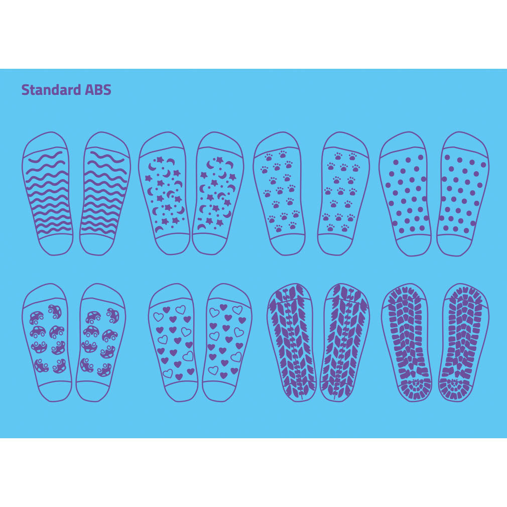 Babysocken bestellen mit ABS Standard oder nach Kundenwunsch gewebt, komplett individualisiert bis zu 7 Farben (Pantone ähnlich).