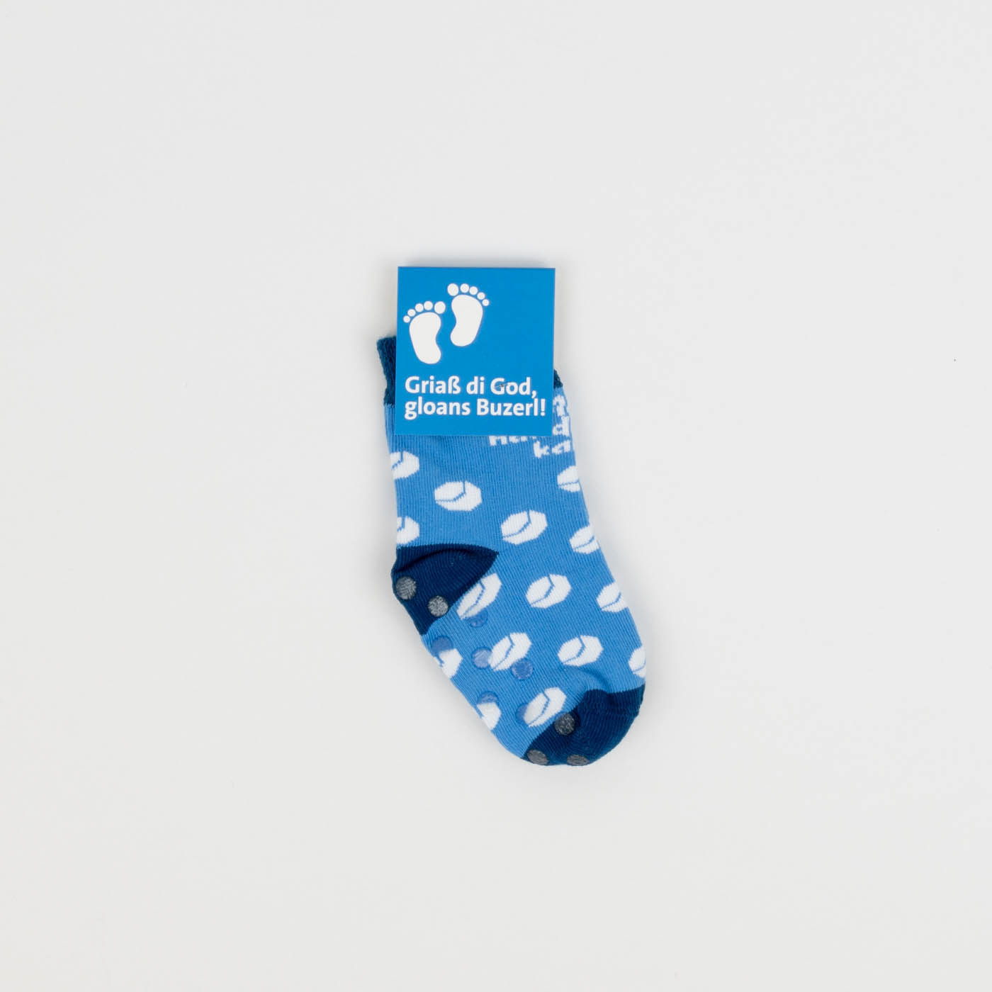 Auf Wunsch Kartonreiter oder Banderole bedruckt. Babysocken nach Kundenwunsch, komplett individualisiert.
