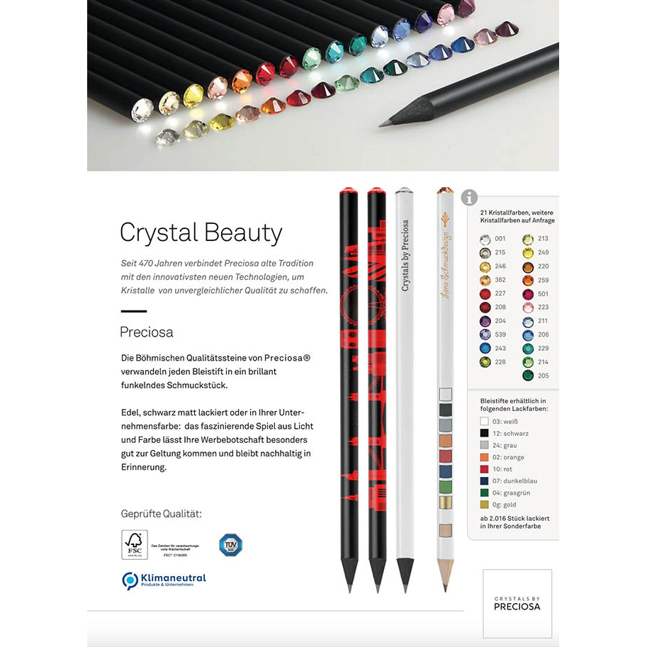 Die Böhmischen Qualitätssteine von Preciosa® verwandeln jeden Bleistift in ein brillant funkelndes Schmuckstück.