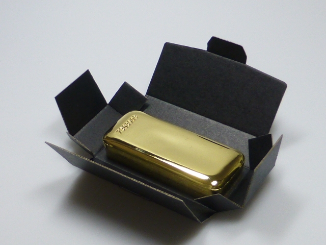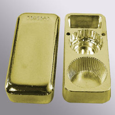 toller Kapselheber in Form eines Goldbarren  echt vergoldet.