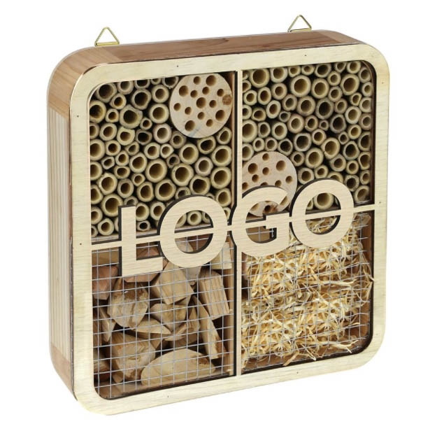 Diesen Werbeartikel -Insekten Hotel mit Logo NEU – können Sie individuell mit Ihrer Werbung veredeln.
