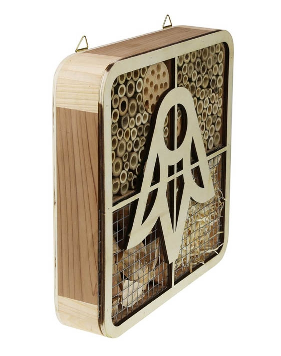 Das charmante Insektenhotel aus zertifizierten Hölzern bietet vielen unterschiedlichen Nützlingen ganzjährig Unterschlupf.