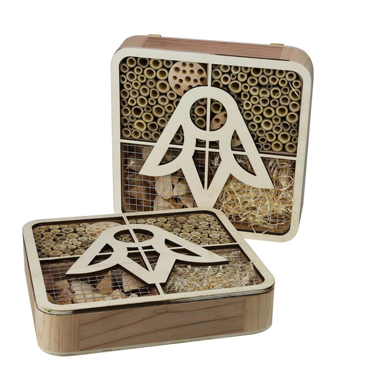 Denn Ihr Logo als individuelles Holz-Cover bildet die Front der Insektenherberge. Mit dem Logo-Insektenhotel helfen Sie aktiv, die Artenvielfalt in Ihrer unmittelbaren Umgebung zu erhalten und setzen gleichzeitig ein deutliches Statement für die CSR Ihres Unternehmens. Inklusive individuellem Front-Cover aus zertifiziertem Birkenholz in Form Ihres Logos.