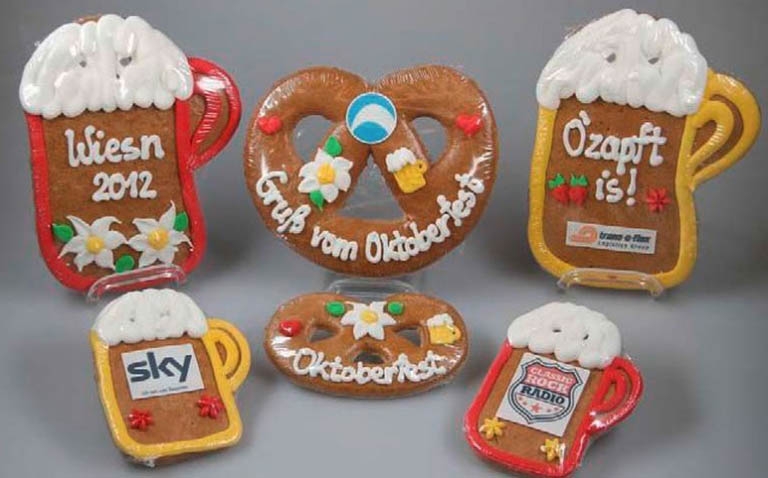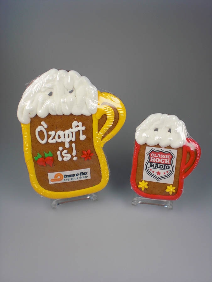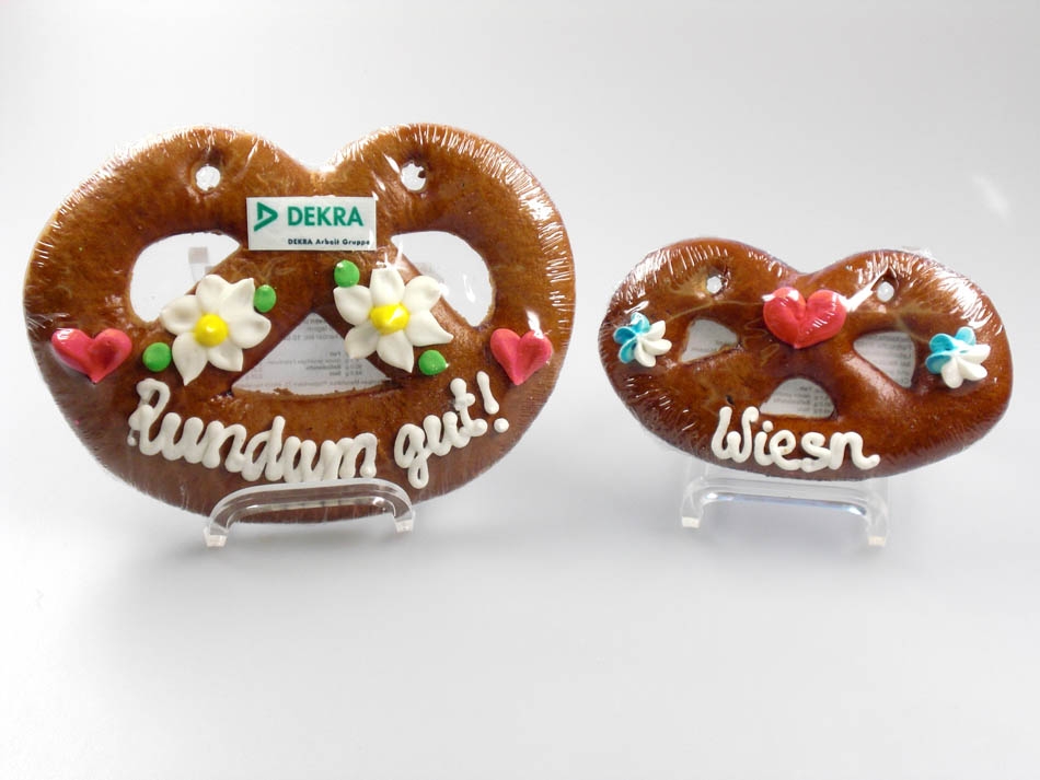 Diesen Werbeartikel – Lebkuchen Herzen, Brezel, Bierkrüge – können Sie individuell mit Ihrer Werbung veredeln.