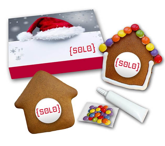 Dieses Lebkuchenhaus Bastelset ist ein Werbeartikel Weihnachten, der sich auch sehr gut als Mailingbeilage eignet.