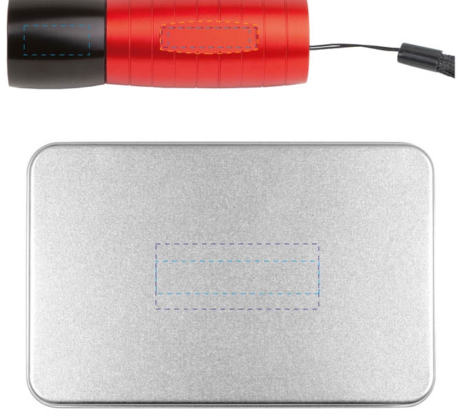 Handschlaufe Stromversorgung: 3 x AAA Batterien (inkl.) Verpackung: attraktive Metalldose