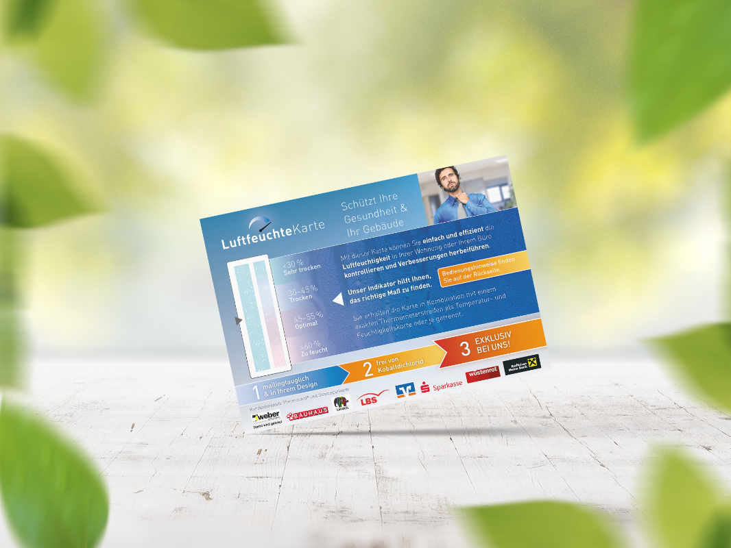 Der optimale Werbeartikel, denn diese Luftfeuchtigkeits-Kontrollkarte beantwortet diese Frage ganz leicht.