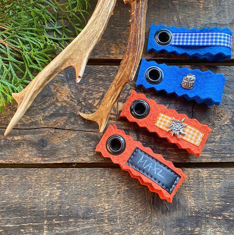 Mit unserem Filz Maßkruganhänger BURSCHI, mit der typisch bayrischen Zick Zack-Kante, können Sie nicht nur Ihre Maß verzieren, sondern ihn auch als Schlüsselanhänger benutzen.