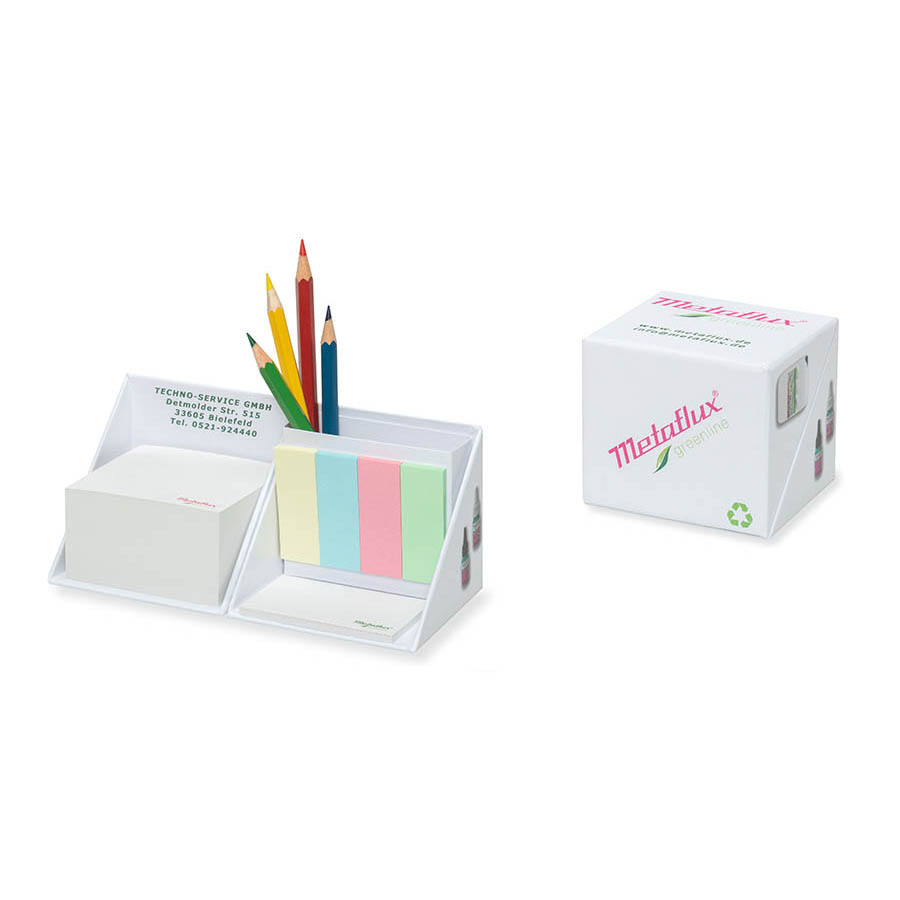 Notizwürfel bedrucken: Das Hardcover Minibüro mit Eco Papier für Ihren Schreibtisch.