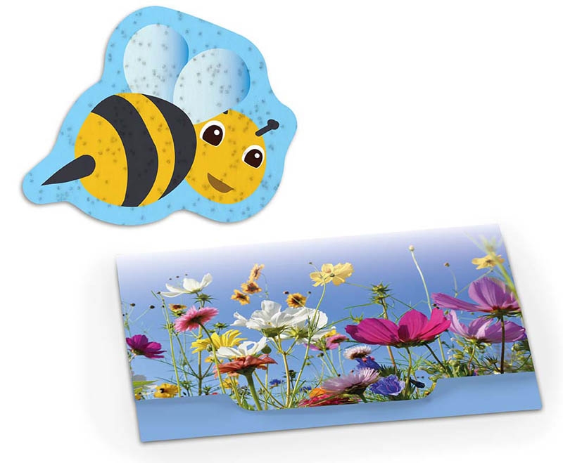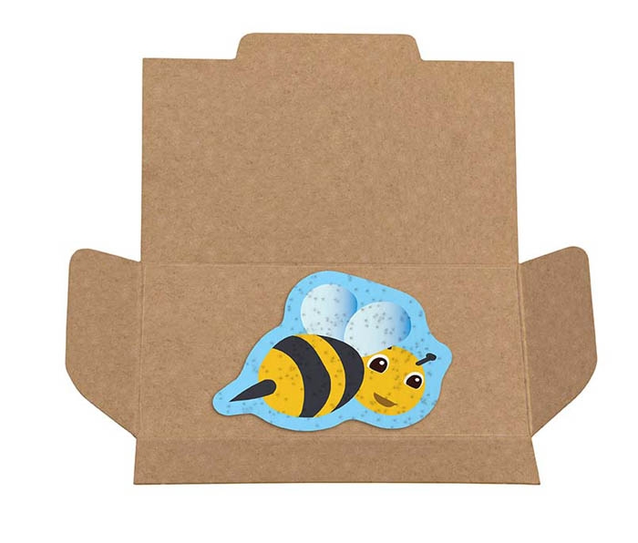 Die Samenpapiere mit den humorvollen Motiven Raupe, Schnecke und Biene