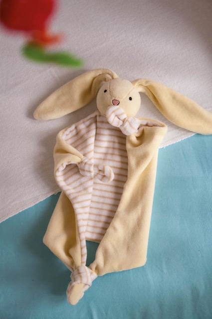 Der Lieblingshase Ihrer kleinen Kunden besteht aus weichem Tuch mit verknoteten Enden und Hasenkopf,