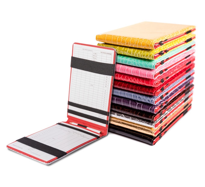 Top modische Mappe für Scorekarten in 12 exklusiven Farben.