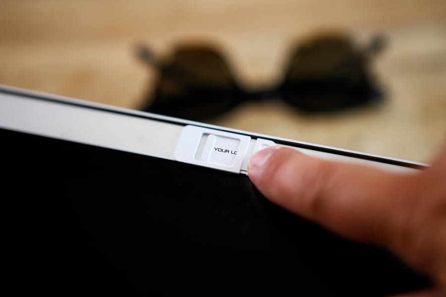 Schieben Sie zu Ihrer Sicherheit einfach den Riegel, bzw. unseren Webcam Schutz vor.